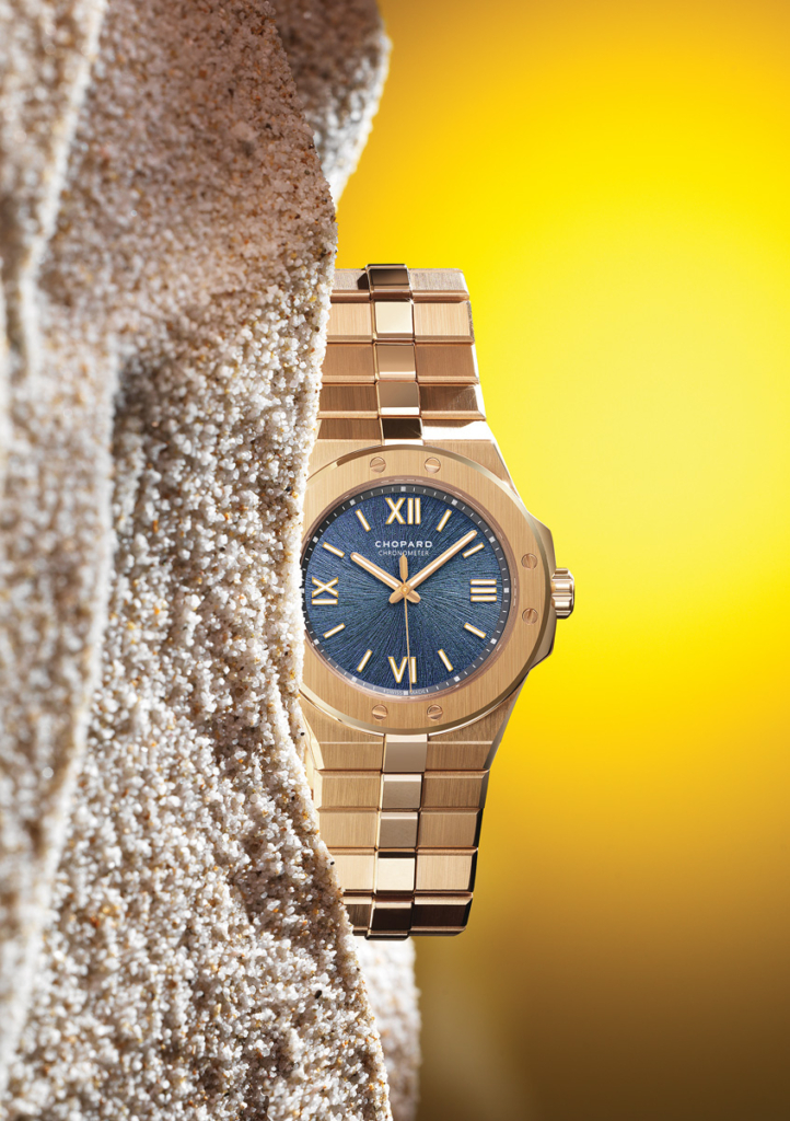 다이얼에는 브랜드 아이덴티티가 담긴 샌드위치 구조를 적용했으며, 세이프티 록 크라운 보호 장치와 클래스프까지 골드테크TM로 함께 가공해 유려한 실루엣을 완성했다.