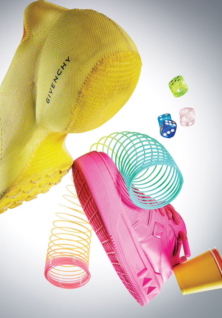 - Givenchy 어퍼부터 아웃솔까지 전체를 테크니컬 니트 소재로 감싼 애시드 옐로 컬러 TK360 스니커즈.