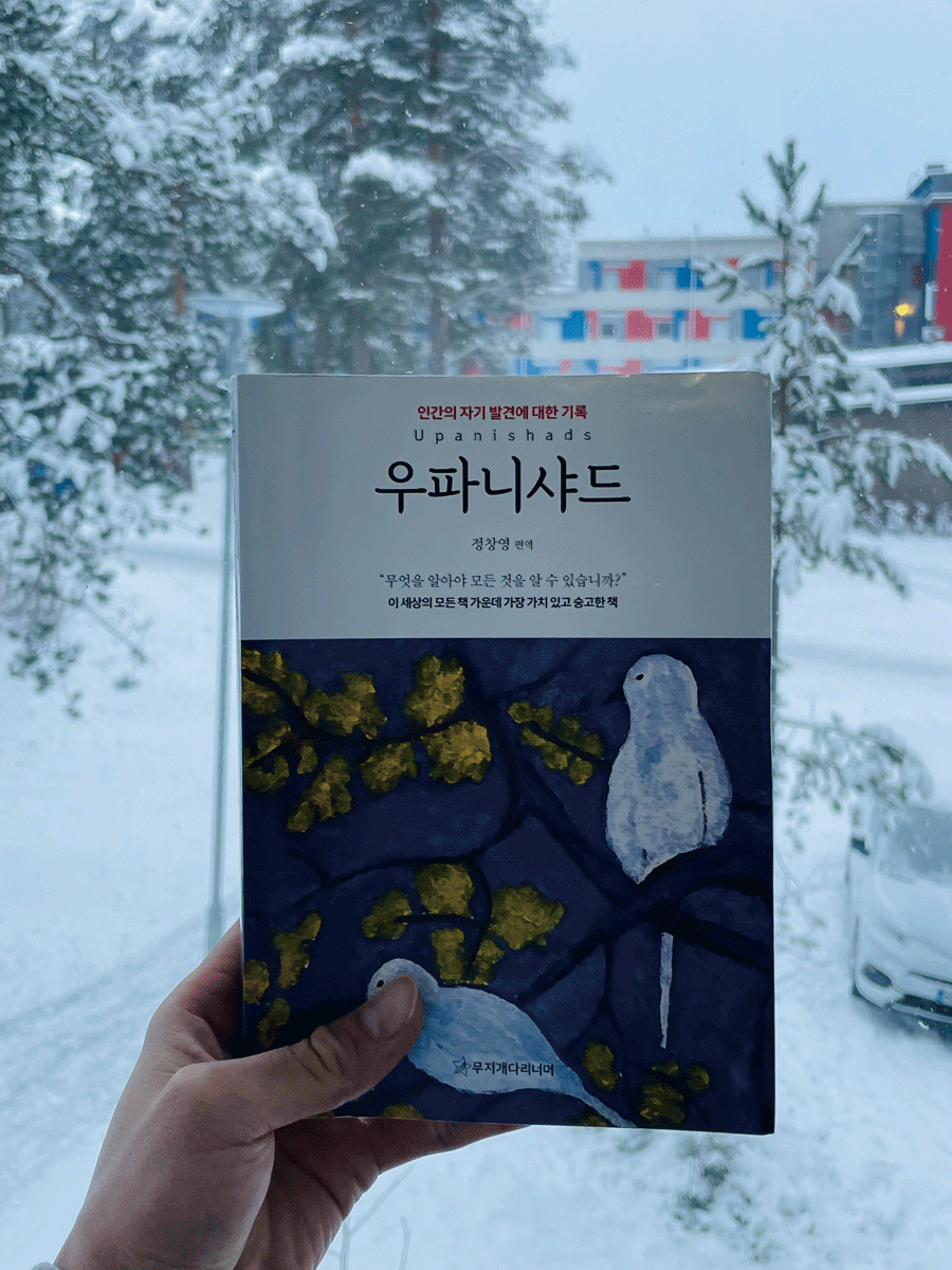 고대 인도의 경전 모음집으로 알려진 이 책을 자주 열어본 다. 첫 페이지의 ‘명료한 의식으로 당신을 깨닫게 하소서’라는 문장을 시 작으로 한 장 한 장 읽다 보면 흐트러진 의식과 마음 을 다잡을 수 있다. 외적 감각 활동을 멈추고 내적 고요함을 유지하는 명상이나 요가처럼 말이다.