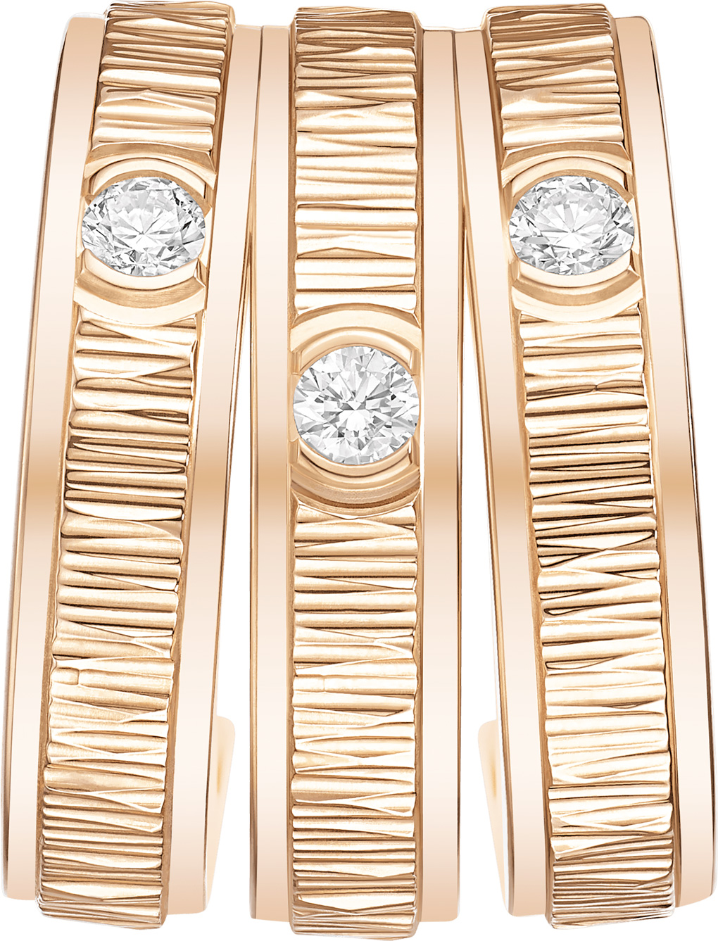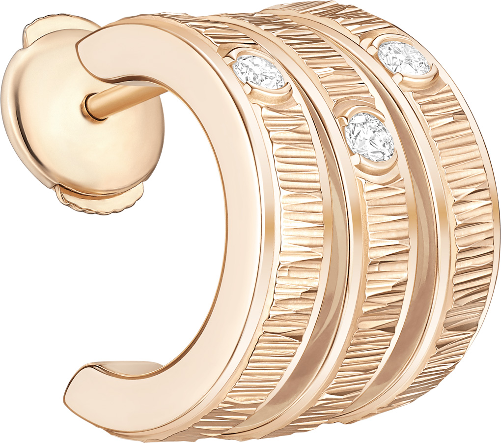 ‘회전’과 ‘형태’가 어우러져 고유의 미학을 완성한 포제션 컬렉션은 경쾌하고 유쾌한 매력을 발산한다. 이번에는 이 포제션 컬렉션이 피아제의 탁월한 금세공 기술력을 증명하는 시그너처 디테일 팰리스 데코를 품었다. 1961년 탄생한 팰리스 데코는 전통적으로 시계에 사용해온 기요셰 기법에서 영감을 받아 진귀한 골드에 불규칙한 줄무늬를 새기며 섬세한 텍스처를 만들어내는 기법이다. 이를 통해 만들어낸 텍스처가 풍성한 빛을 품은 주얼리를 탄생시킨다. 장인이 일일이 수작업으로 인그레이빙을 진행하기 때문에 모든 팰리스 데코 디테일은 각각 고유한 매력을 뽐낸다. 포제션의 회전 디테일과 이 팰리스 데코 기술을 결합한 링, 트리플 핑크 골드 이어링으로 구성한 특별한 컬렉션이 시선을 사로잡는다.