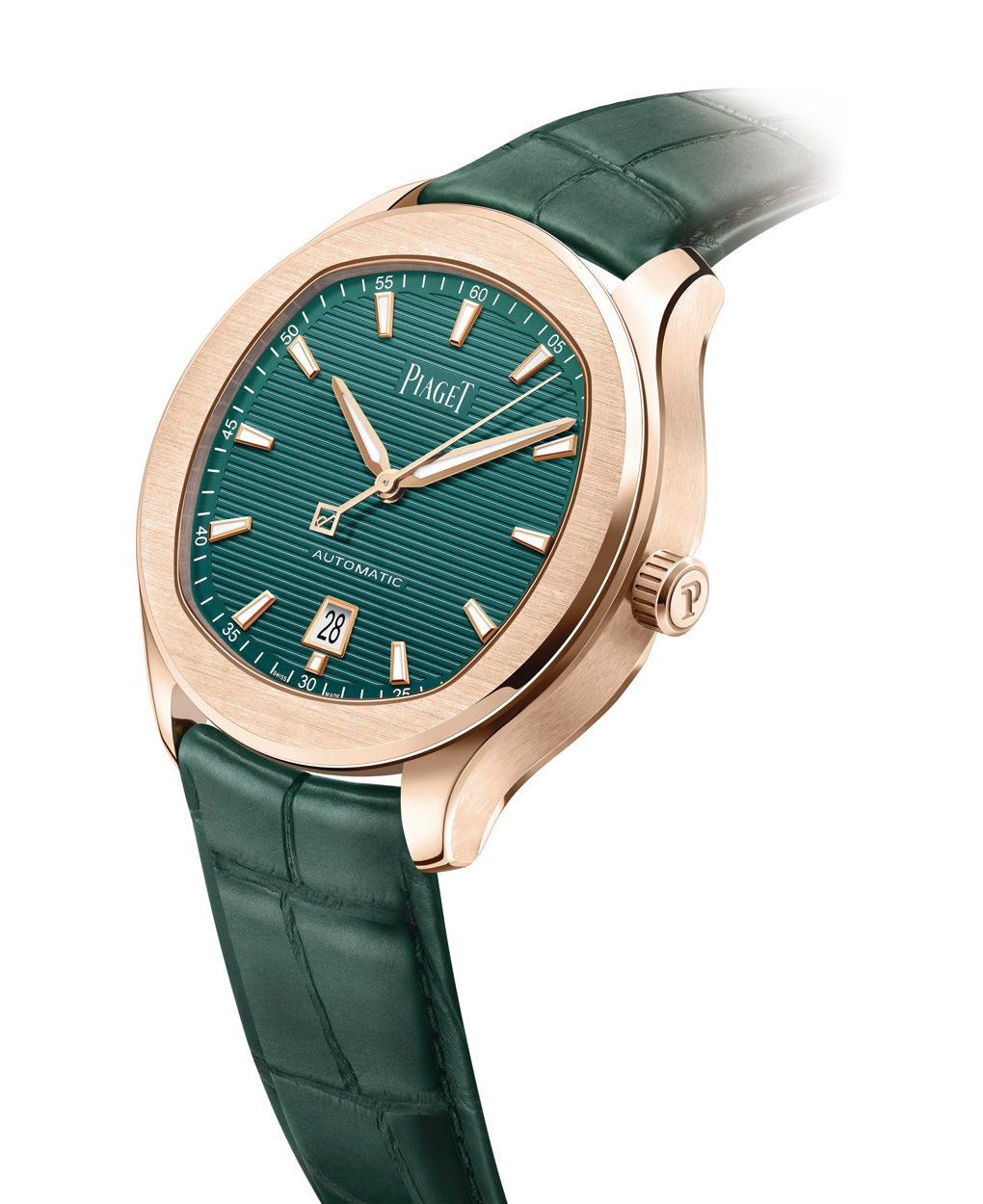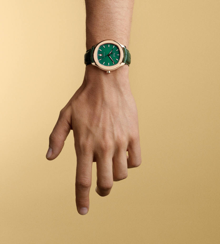 면서 대담한 컬렉션을 선보인 것. 여전히 다양한 그린 컬러에서 영감을 받으며 스타일리시한 타임피스를 선보이고 있는 피아제가 이번에 그린을 적용한 곳은 바로 피아제 폴로 데이트.