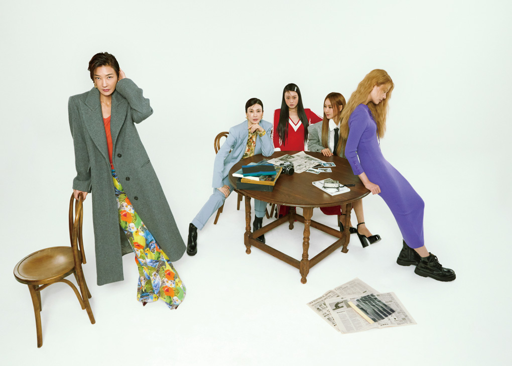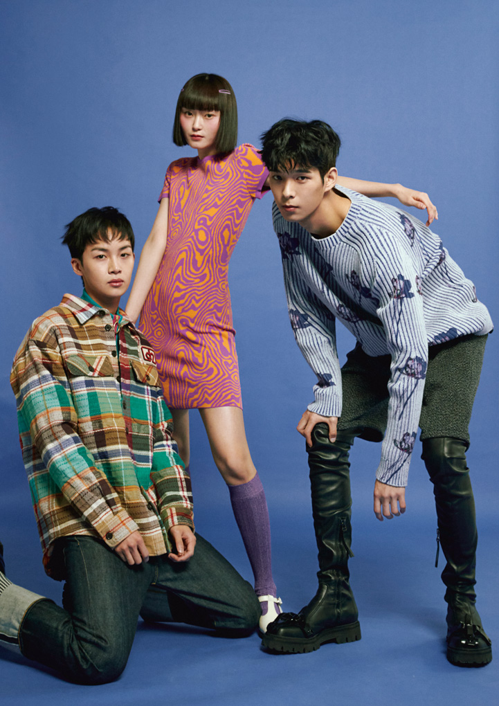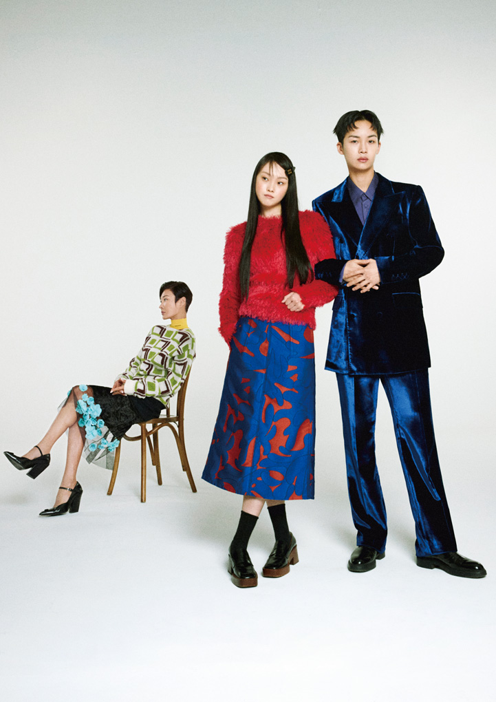 수아_ 플러피 퍼 스웨터 Isabel Marant, 추상적 플라워 패턴 자카드 스커트 2 Moncler 1952, 플랫폼 페니 로퍼 Tod’s, 페이턴트 레더 로고 헤어핀 Miu Miu, 블랙 삭스 에디터 소장품.