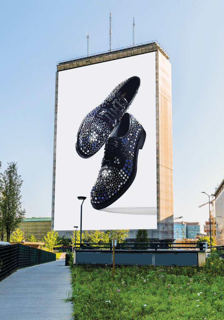 스터드와 라인스톤 장식 더비 슈즈 Prada.