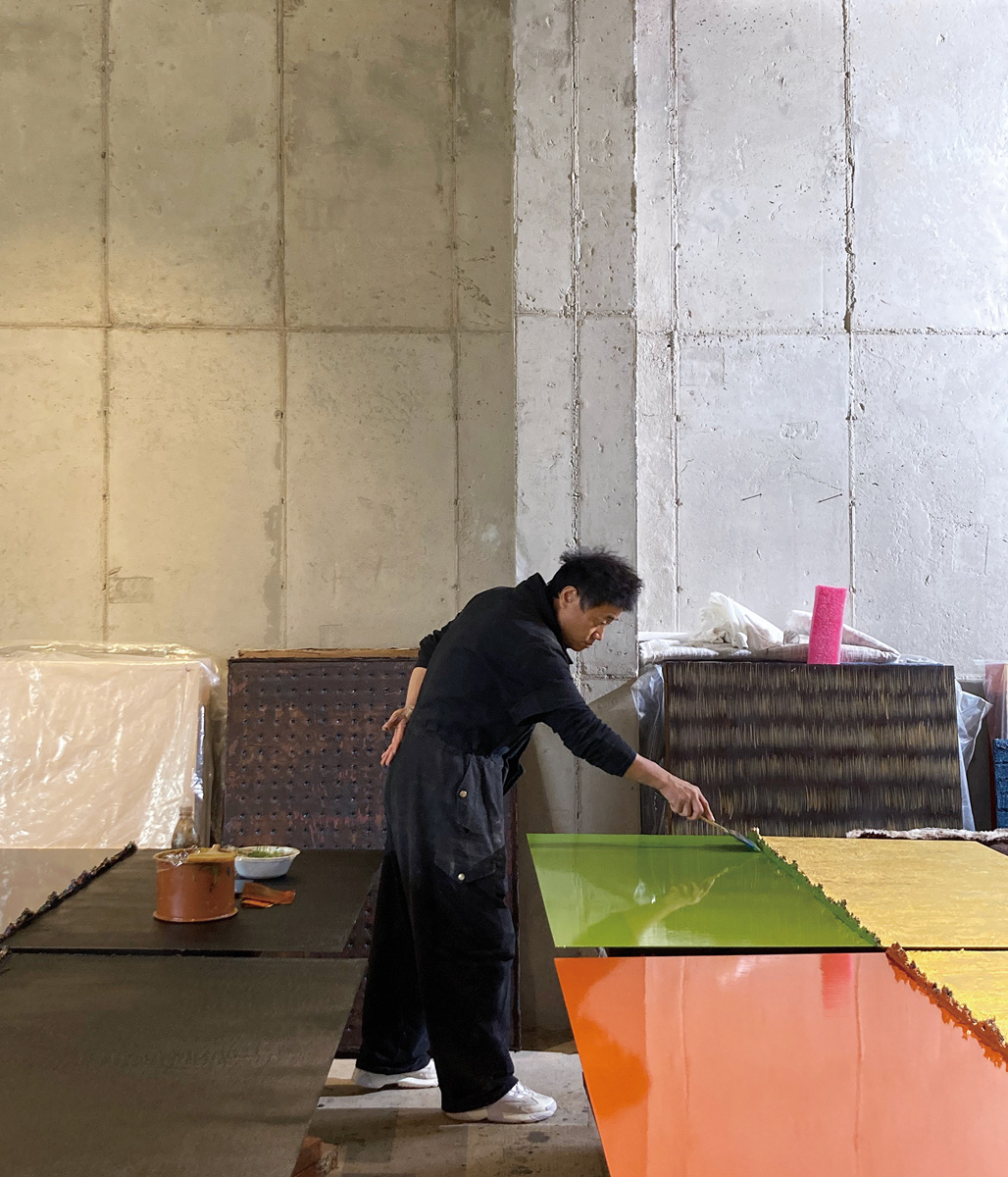 옻의 물성적 특징과 매력_ 자연에서 나온 도료라 자연에 반응하는 특수성이 있다. 옻칠은 시간이 쌓이며 발색을 하고, 시간과 환경에 따라 다른 빛깔을 띤다. 이 부분이 신비롭게 다가온다. 더불어 시간성을 이야기하는 내 작업에서 옻 역시 동일하다는 점이 일관적이라고 생각한다.