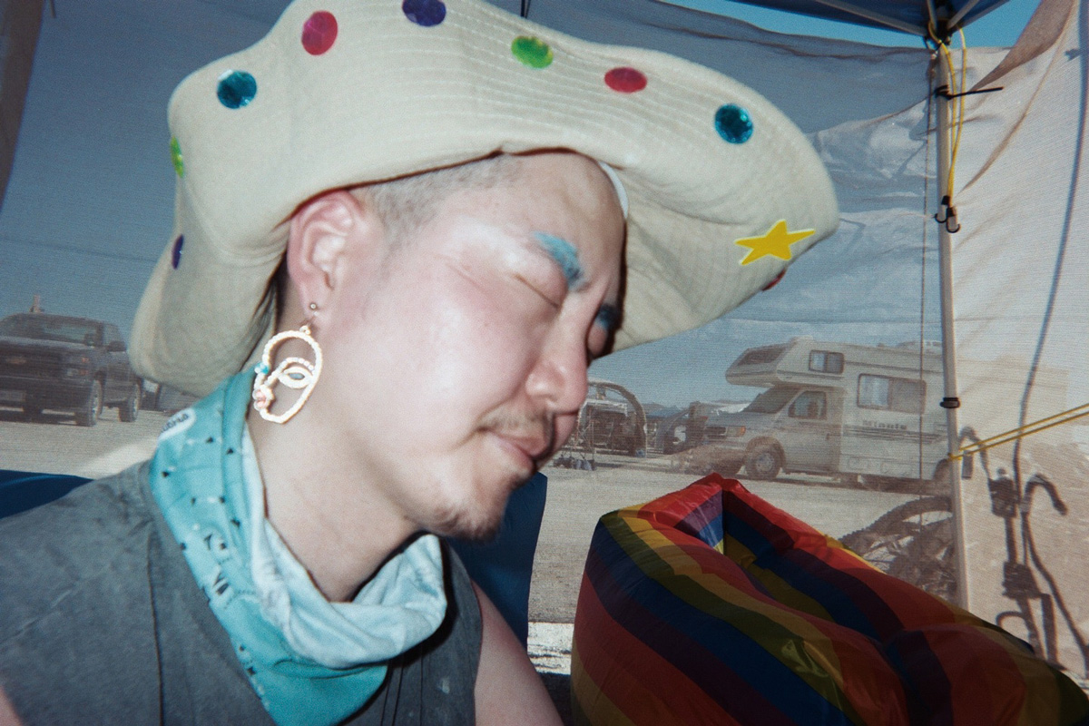 휴가로 버닝맨(미국 서부 네바다주 블랙록 사막에서 열리는 행사) 갔을 때. 이름난 집사람.