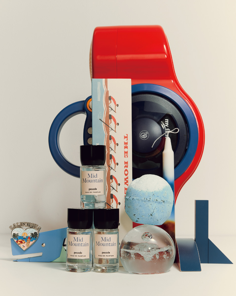 추천 향_ 미드 마운틴. 산의 중 턱 즈음 올랐을 때 느껴지는 젖은 숲 냄새와 꽃 향, 블랙티의 이국적 향이다 페사드의 공간_ 향과 제 품 또한 아트 피스로 생각되길 바라며 전시 개념을 접목했다. 이를 위한 비정형 집기가 필요했고, 이 광호 작가와 협업하게 되었다.