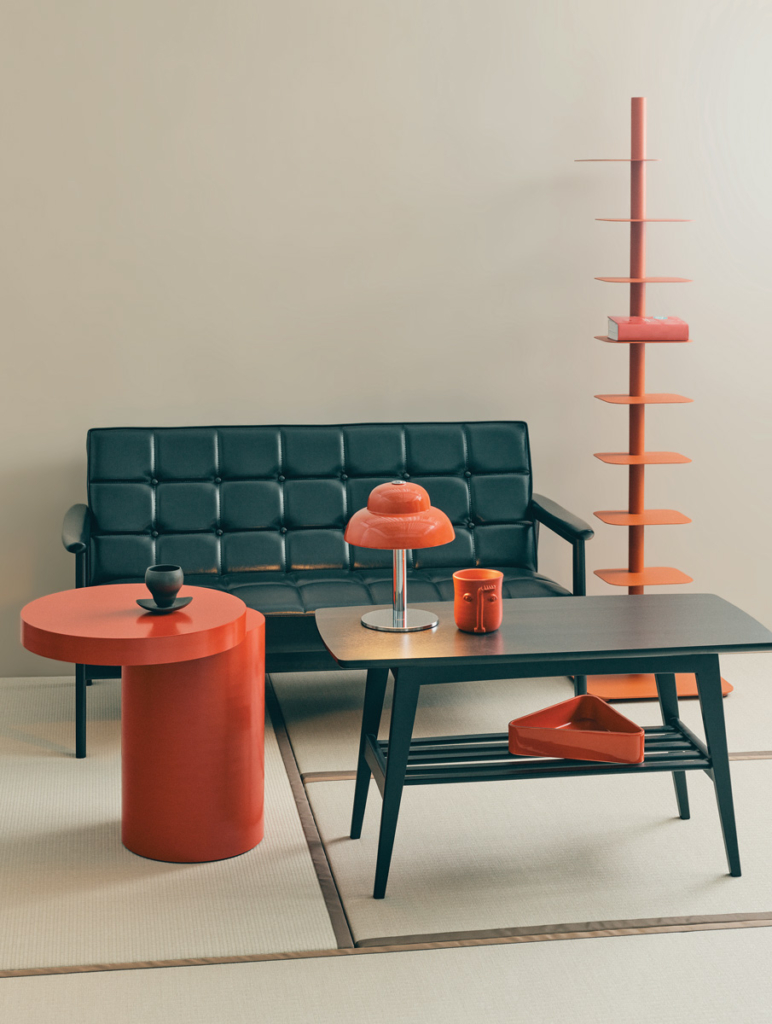 기공으로 인해 통기성과 보온성이 좋아 음식의 맛과 향을 잘 담아내는 장점을 지닌 제주점토로 만든 섬(Sum) 컵과 소서는 모두 Shihoil, 가리모쿠 60(Karimoku 60)을 대표하는 K체어 2인 소파와 리빙 테이블은 모두 Unwind 제품. 사이즈가 다른 볼 2개를 쌓아 올린 형태의 프로그 22(Frog 22) 테이블 스탠드는 Ilkwang Lighting, 얼굴을 형상화한 유니크한 디자인의 페이스(Face) 화병과 단순한 삼각 형태를 강조한 캔버스(Canvas) 센터피스는 모두 The Conran Shop, 좁은 공간에서도 효율적으로 책을 수납할 수 있는 디자인 위딘 리치(Design Within Reach)의 스토리(Story) 북케이스는 Space Logic에서 판매한다.