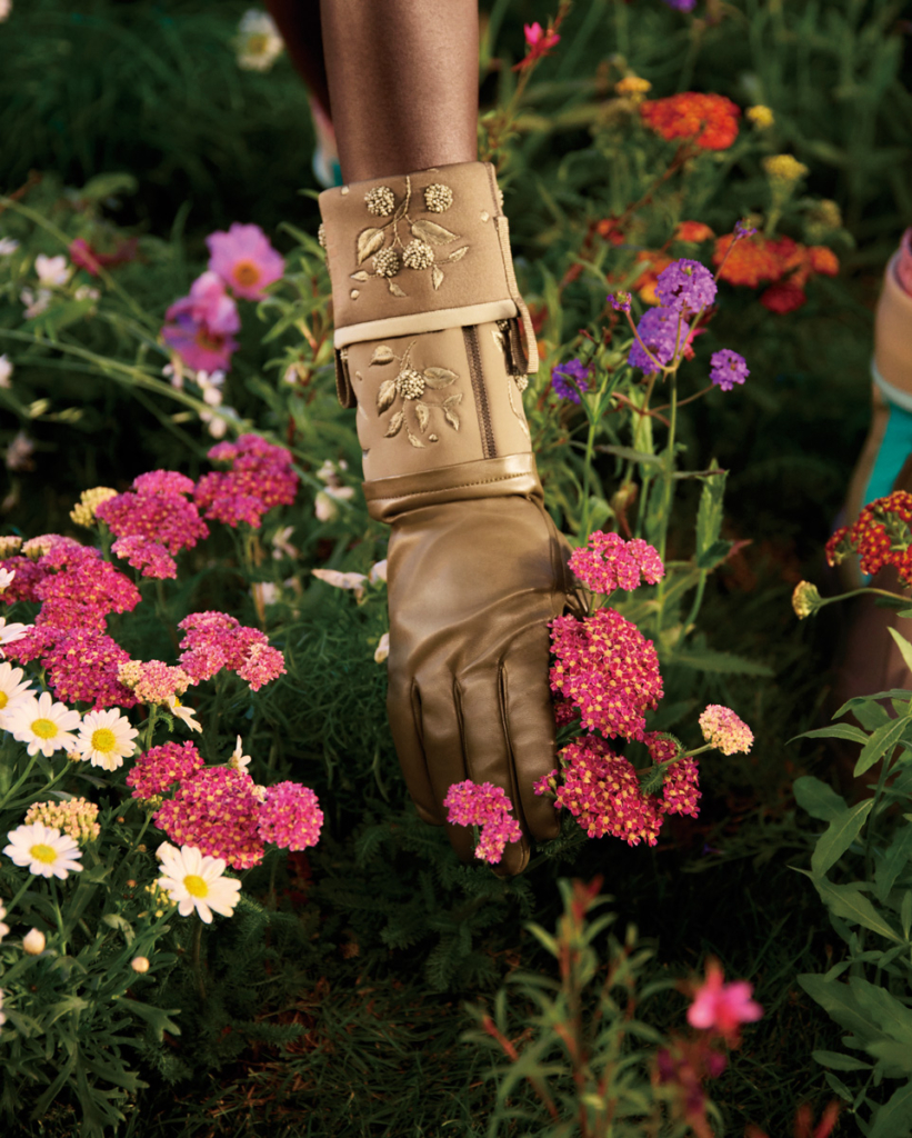 비즈 자수 장식과 네오프렌 소재를 접목한 가죽 장갑, 디올 가든 부츠 모두 Dior Men.