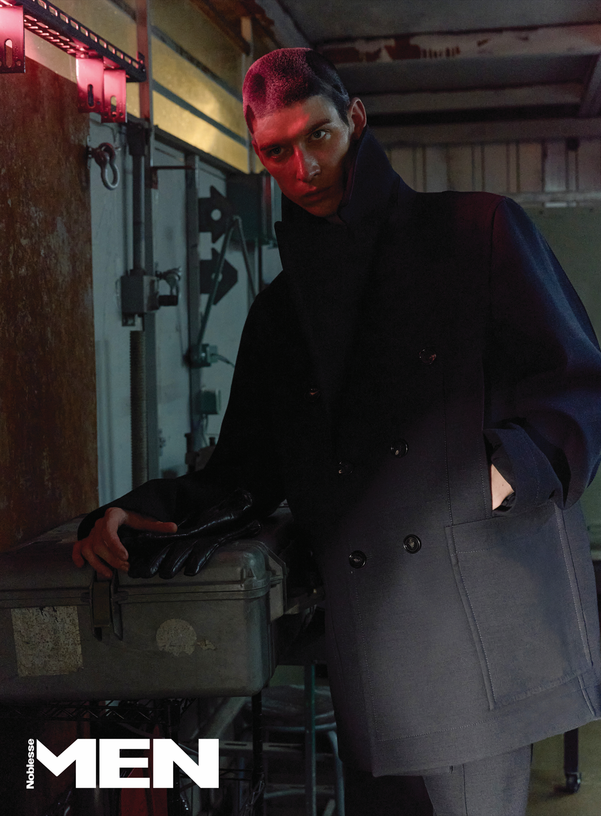 - 네이비 피코트와 팬츠 모두 Bottega Veneta.