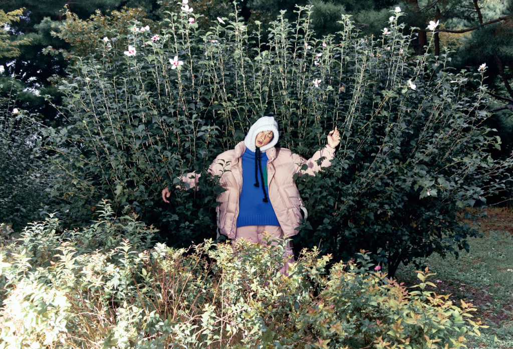 파우더리한 핑크 다운재킷과 쇼츠 모두 Moncler JW Anderson,