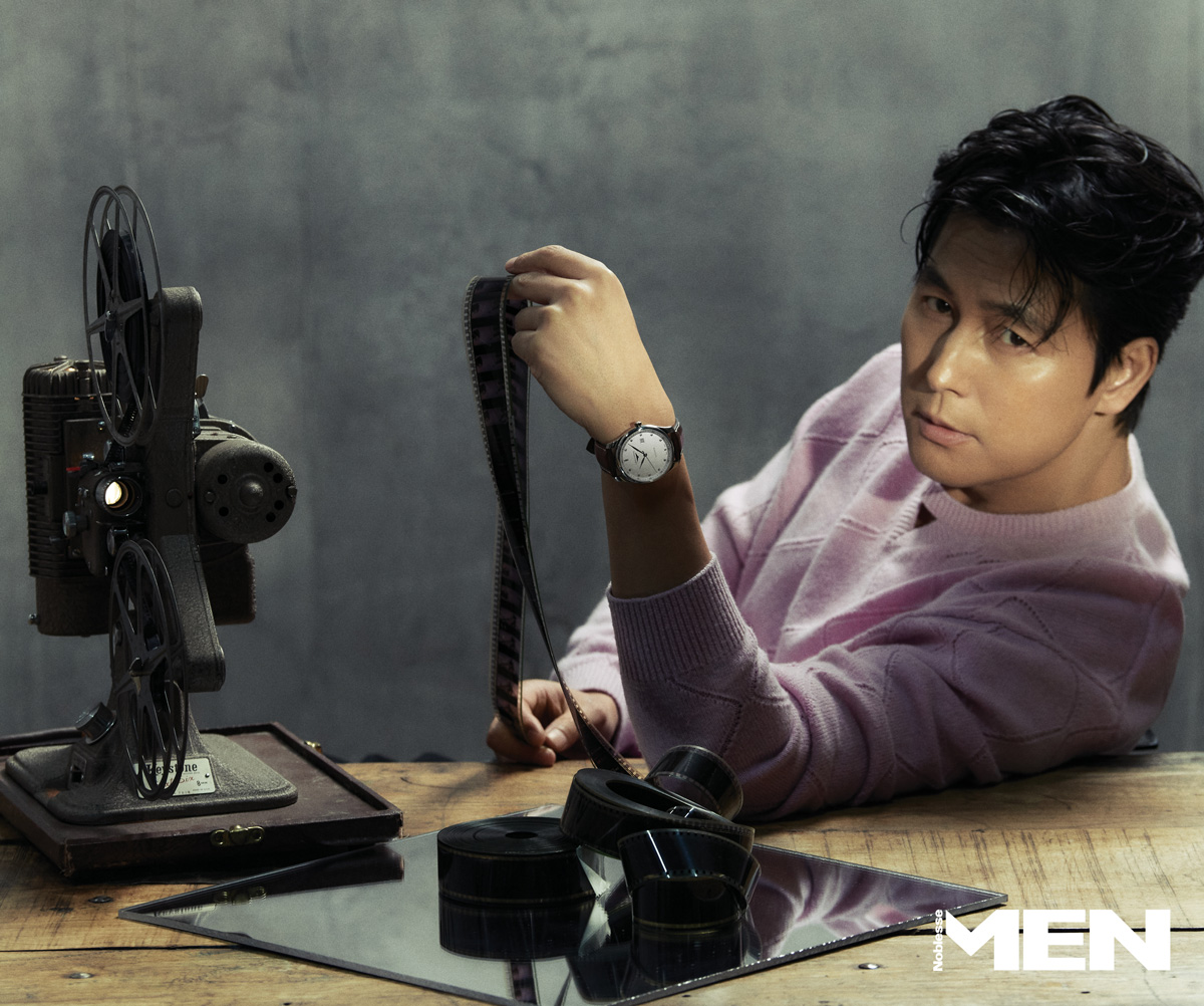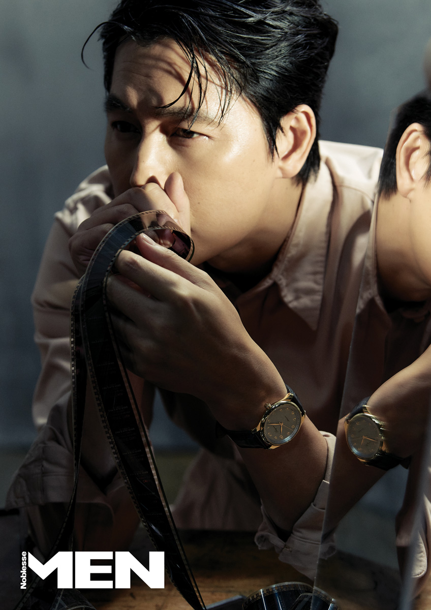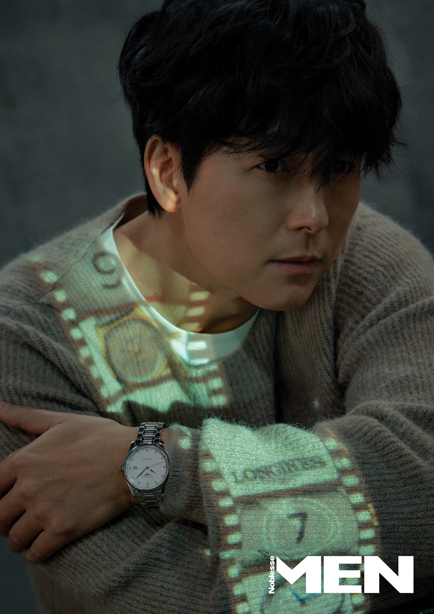 • 2005년 출시 이후 론진의 정신을 가장 완벽하게 구현한 타임피스로 알려진 마스터 컬렉션. L888 칼리버를 탑재했으며, 72시간의 파워리저브를 제공한다. 정우성이 착용한 시계는 스테인리스스틸 케이스에 브라운 앨리게이터 스트랩으로 클래식한 분위기를 배가했다. Longines.