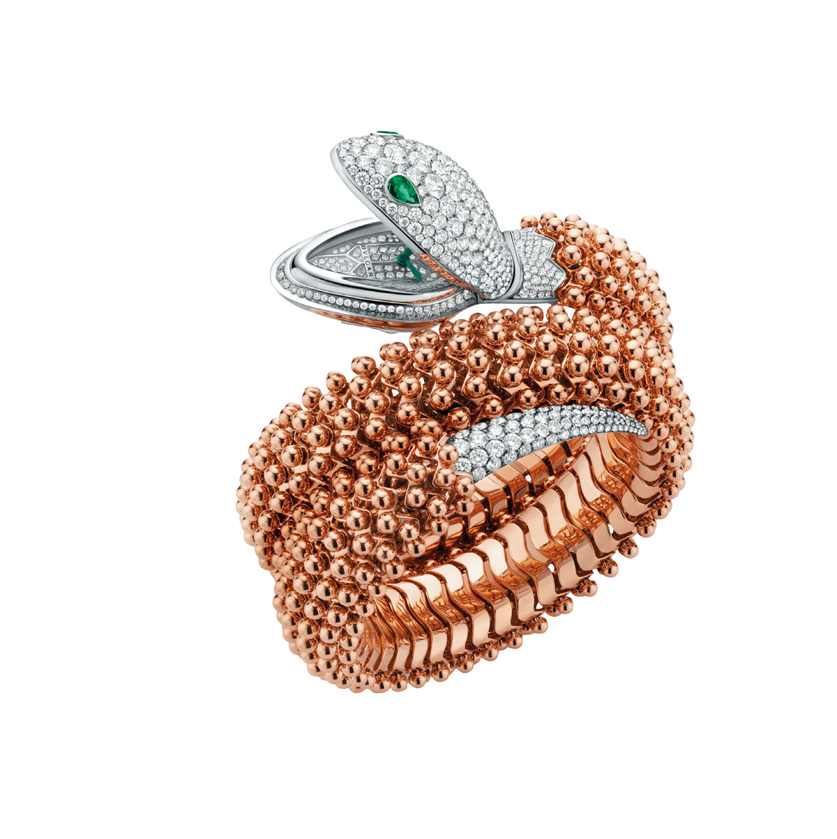 손목이 훤히 드러나는 이 계절에 당신의 손목을 빛나게 해줄 불가리의 세르펜티 브레이슬릿과 워치다. 풍요, 지혜, 불멸, 장수를 의미하는 뱀을 장인의 손길로 세밀하고 실감 나게 표현했다. 55개의 마키즈 스텝 컷 다이아몬드와 62개의 라운드 & 페어 컷 에메랄드를 파베 세팅한 세르펜티 하이 주얼리 브레이슬릿은 유연성이 높아 착용감이 좋다. 손목을 따라 움직이는 작은 구체가 생동감을 더하는 세르펜티 미스테리오시 워치는 관능적인 뱀의 매력을 고스란히 담아냈다. 브릴리언트 컷 다이아몬드를 세팅한 다이얼과 눈에 그린 에메랄드를 세팅한 뱀 머리 장식은 이 워치의 놓칠 수 없는 포인트.