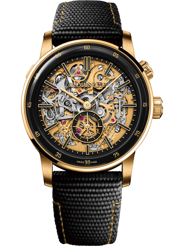 오데마 피게가 코드 11.59 바이 오데마 피게 그랑 소네리 카리용 슈퍼소네리 모델을 공개했다. 핑크 골드와 옐로 골드, 화이트 골드 총 세 가지로 만날 수 있다. 그랑 소네리 카리용 슈퍼소네리 컬렉션 최초로 18캐럿 골드 케이스에 블랙 세라믹을 조합해 독특한 매력을 자아낸다. 그중에서도 눈여겨볼 점은, 투명한 사파이어 다이얼 아래 무브먼트를 드러나게 한 것. 각 무브먼트의 색상을 균일하게 구현했으며, 새틴 피니싱을 적용해 섬세한 아름다움을 느낄 수 있다. 더불어 이 워치는 미니트리피터처럼 착용자가 원할 때 시간을 알려줄 뿐 아니라 매 시 정각과 15분마다 타종하는 것이 큰 특징이다. 추가한 슈퍼소네리 메커니즘에는 회중시계와 같은 음향 성능을 갖춰 소리의 품질과 음색이 탁월하다.
