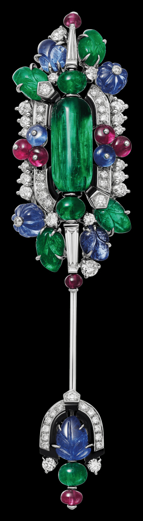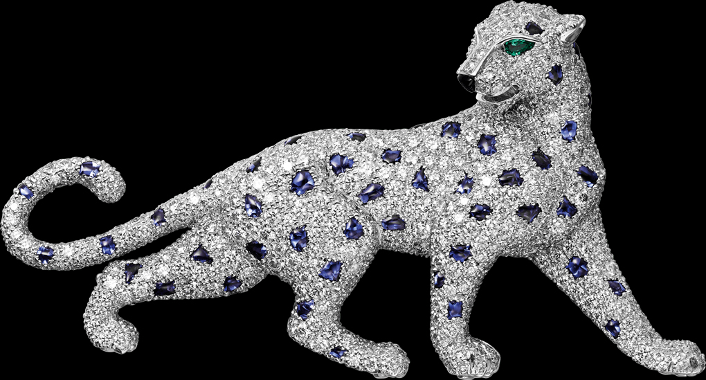 자아낸다. 메종의 아이콘으로 자리 잡은 팬더 드 까르띠에 브로치 또한 빼놓을 수 없다. 고양잇과 동물을 모티브로, 몸통은 총 2.88캐럿의 브릴리언트 컷 다이아몬드 604개, 몸통의 무늬는 사파이어, 눈은 에메랄드 그리고 코는 오닉스로 섬세하게 표현했다. 역동적 포즈의 팬더는 슈트 라펠 위에서 더욱 고급스럽게, 변화무쌍하
