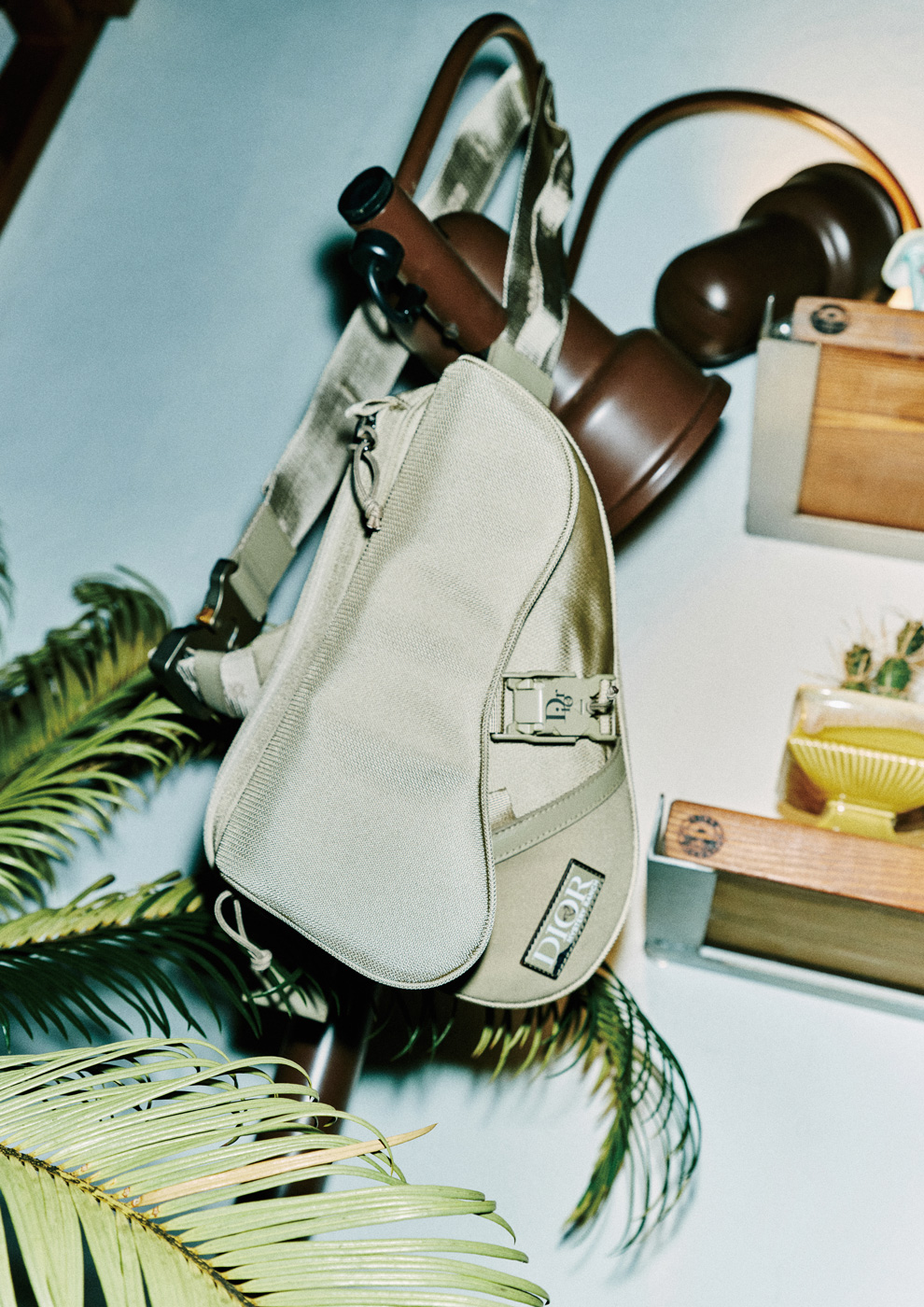 가운데_ 카키 나일론 새들 백 Dior Men.