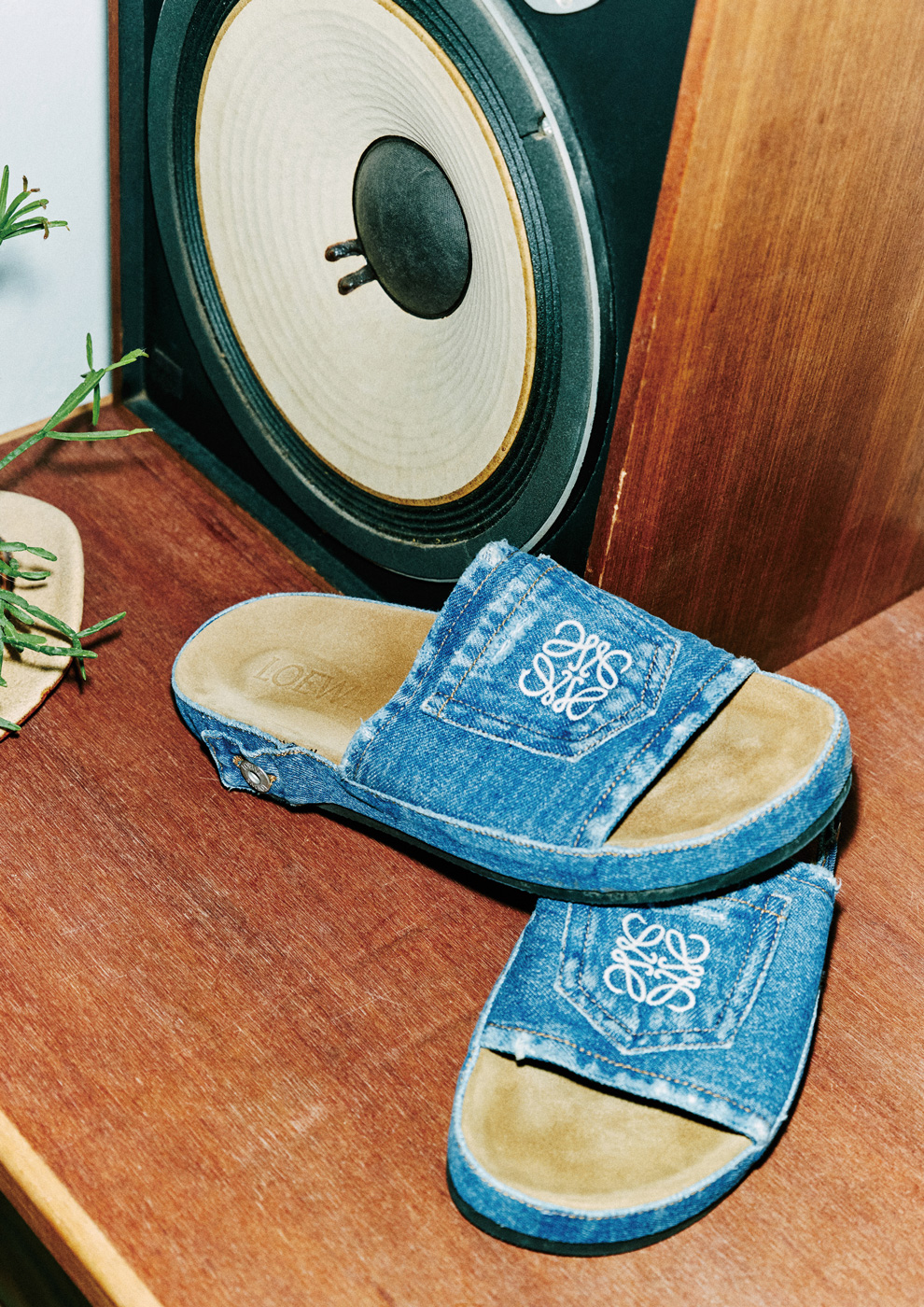 왼쪽_ 디컨스트럭티드 데님 슬라이드 슈즈 Loewe.