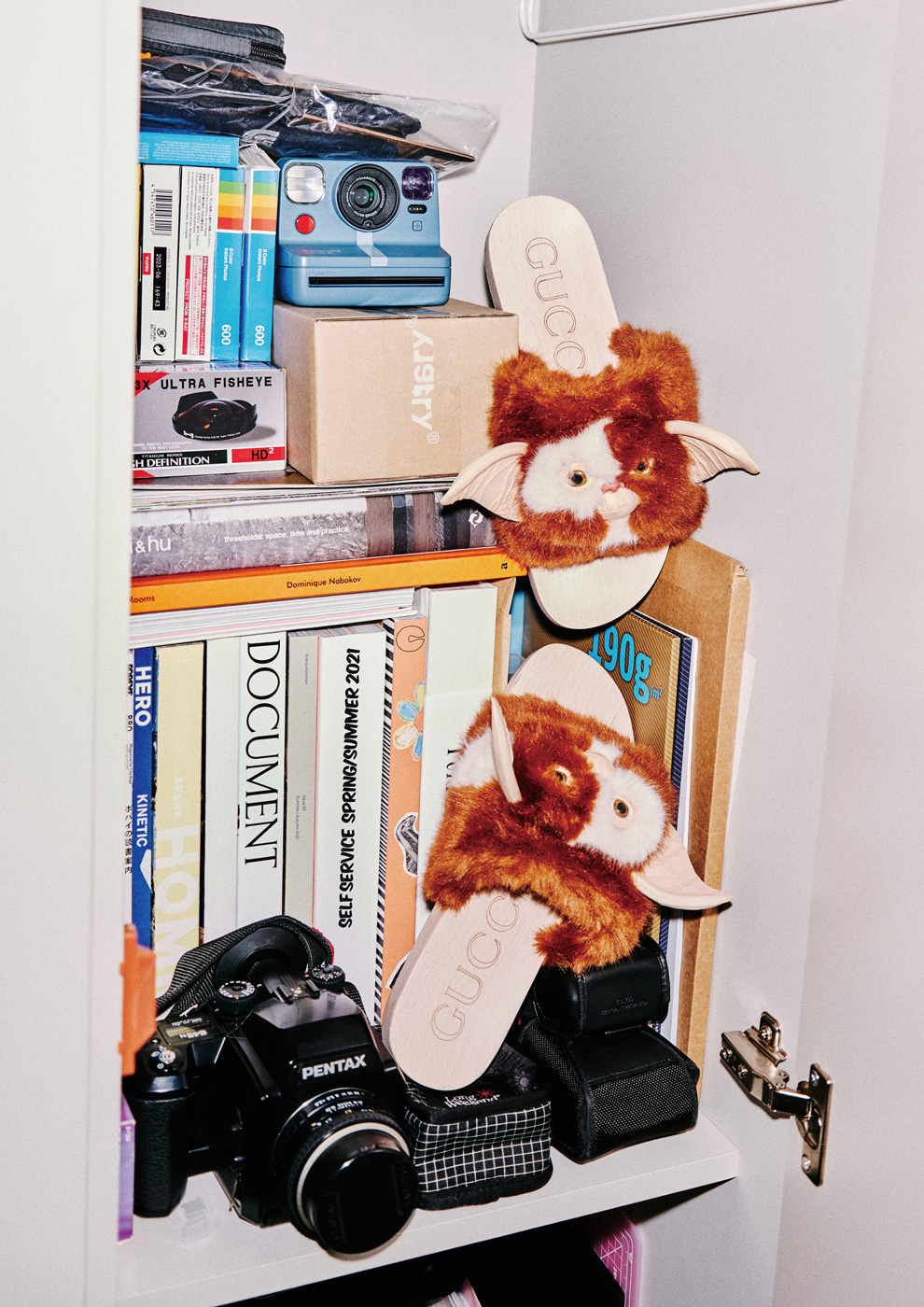 왼쪽_ 그렘린 모티브의 슬라이드 슈즈 Gucci.