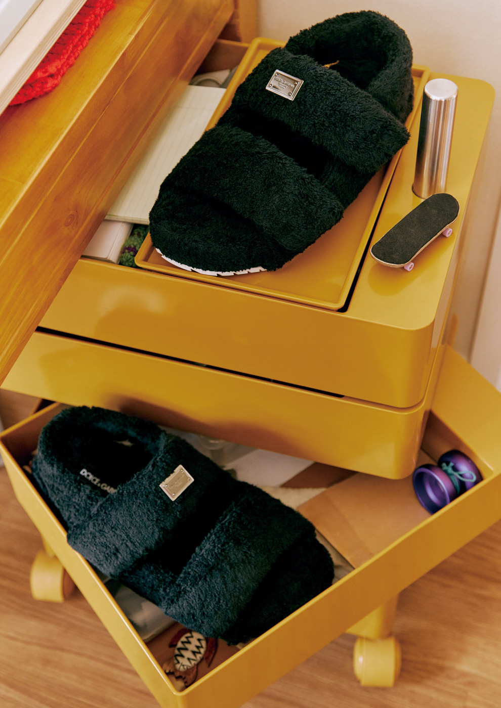 왼쪽_ 블랙 테리 샌들 Dolce&Gabbana.
