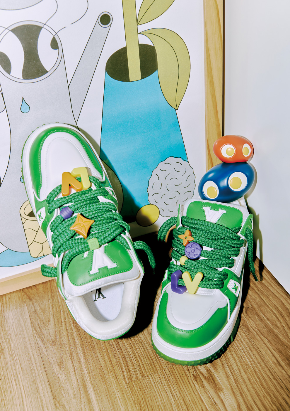오른쪽_ 컬러 비즈 장식이 돋보이는 트레이너 맥시 스니커즈 Louis Vuitton.
