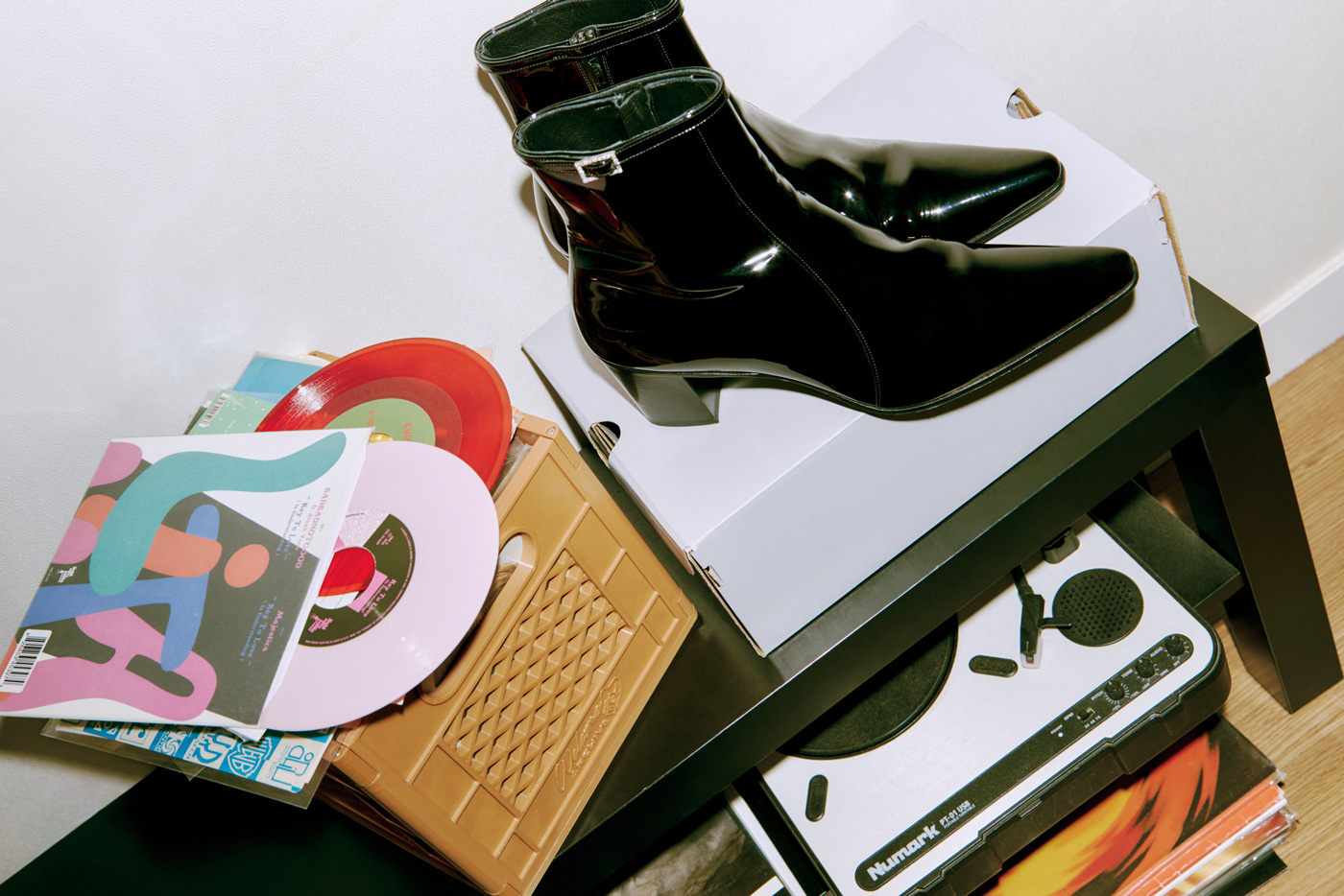 오른쪽_ 페이턴트 레더 라인 스톤 버클 디테일 앵클부츠 Saint Laurent by Anthony Vaccarello.